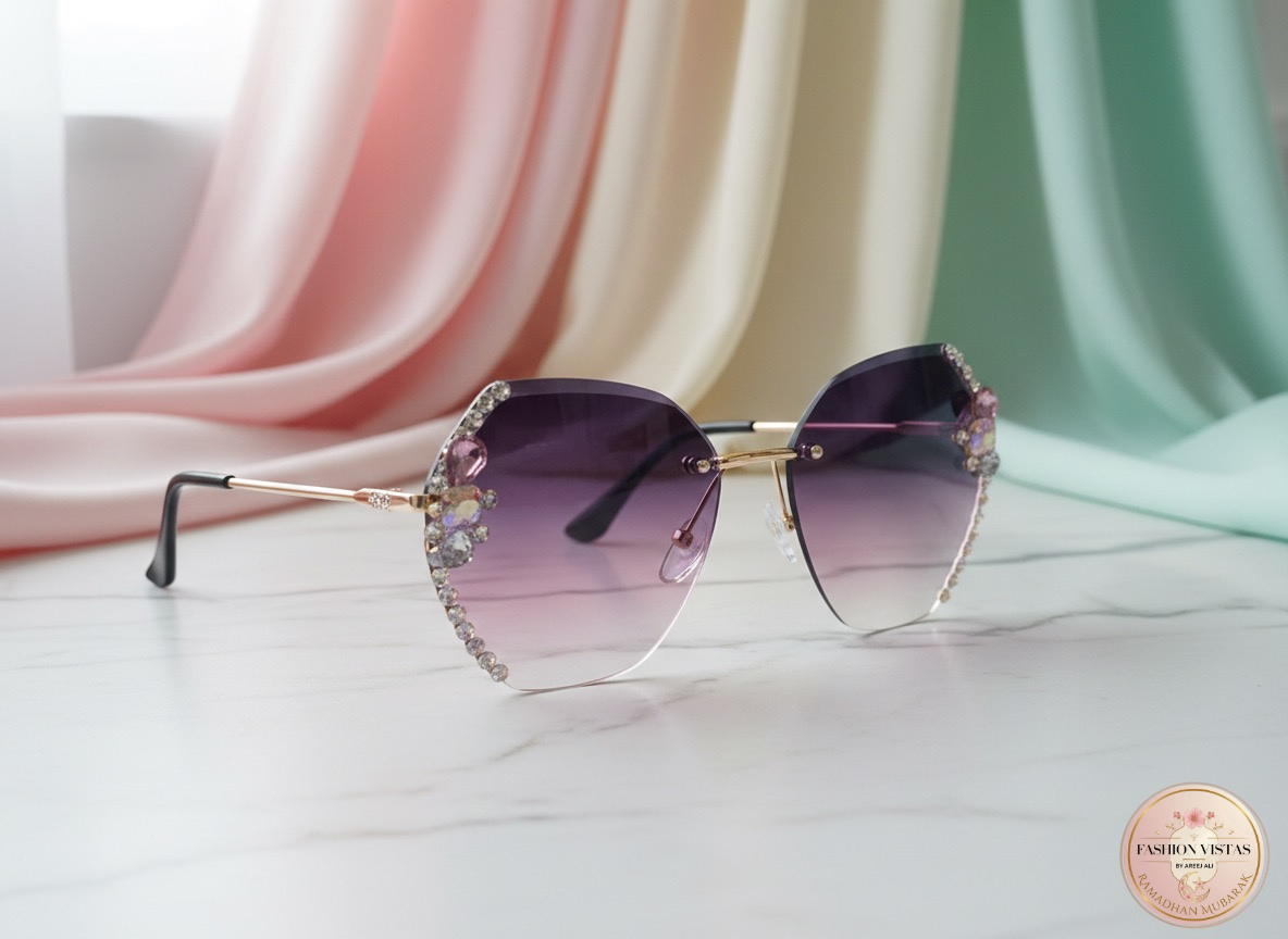 Elegant rimless sunglasses featuring soft gradient lenses and a sleek metallic frame, accentuated with delicate crystal embellishments along the edges. Designed to blend glamour with modern minimalism, these sunglasses offer a refined, high-fashion look perfect for both casual outings and statement styling. Lightweight and sophisticated, they add a touch of sparkle and luxury to any ensemble while providing comfortable everyday wear.